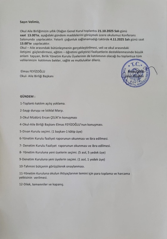 OKUL AİLE BİRLİĞİ GENEL KURUL TOPLANTISI